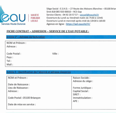 le 29 juillet, j'ai remis à M. Cursi (directeur de Briançon des Ambulances) les documents pour entamer les démarches pour demander son propre compteur d'eau